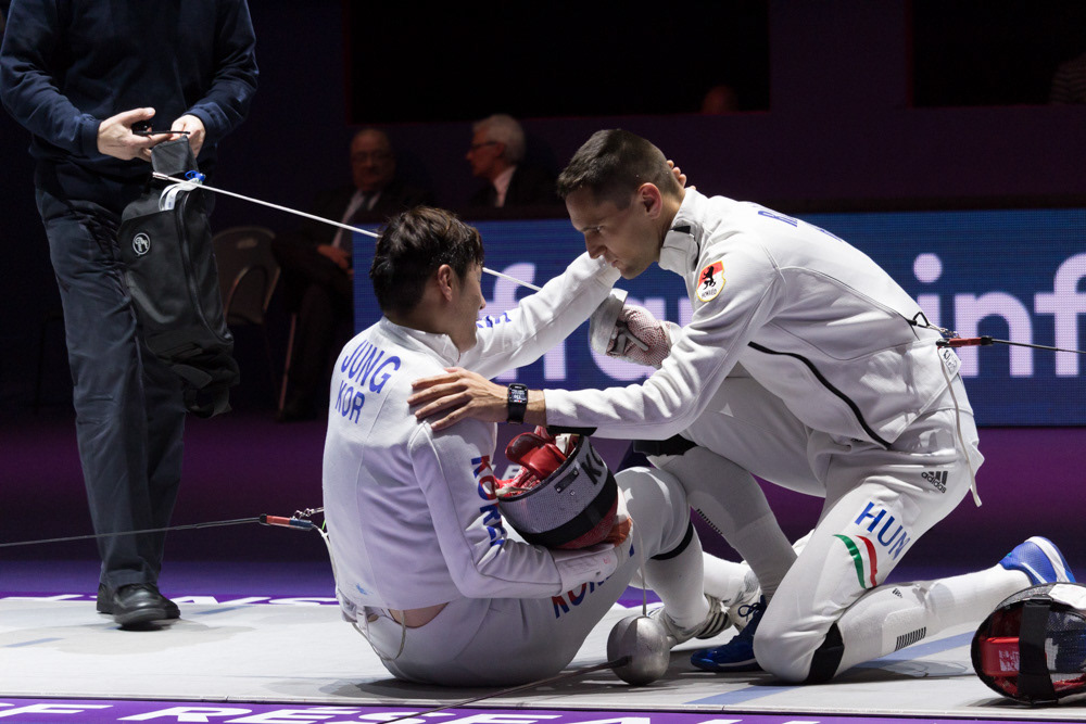 Le Challenge SNCF Réseau 2018, l'une des épreuves comptant pour la Coupe du Monde d'épée hommes au stade Pierre de Coubertin à Paris. La victoire fût emportée par la Hongrie.