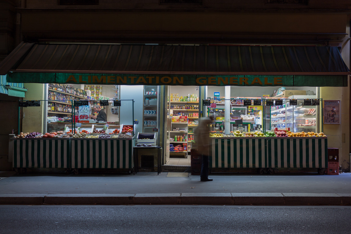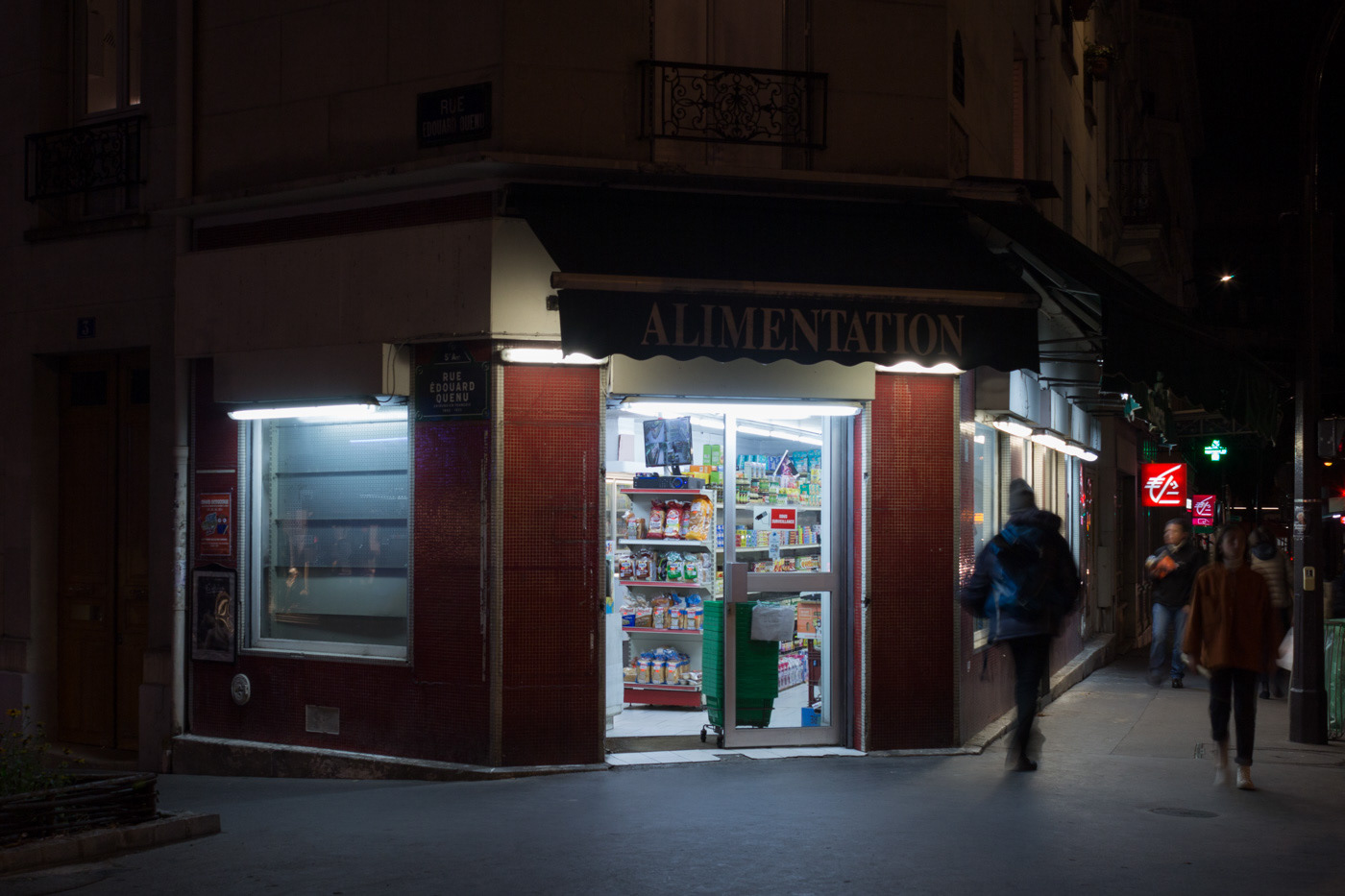Voici une série de photos où je me suis intéressée aux magasins ouverts tard le soir, qui illuminent les rues de Paris.